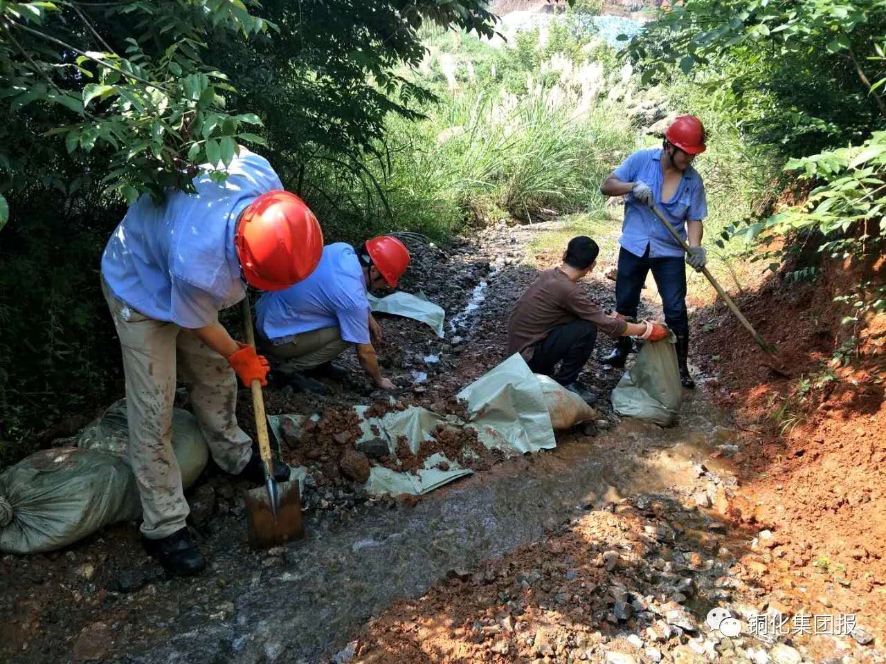 7月7日,大雨過后,新橋公司及時組織人員對工業(yè)場所和礦區(qū)道路淤泥、砂石、積水進行清理,修整,恢復(fù)被雨水沖塌的部分廠區(qū)圍墻和防水壩。期間,該公司黨群工作部組織員工清理副井堆礦場道路兩邊的砂石;選鐵廠組織員工筑壩截水,以修復(fù)被大雨沖塌的圍墻;選礦廠組織員工清理防洪水溝內(nèi)的碎石,確保溝渠暢通。下圖為員工在裝土筑壩截水。喬欣 李霞 攝