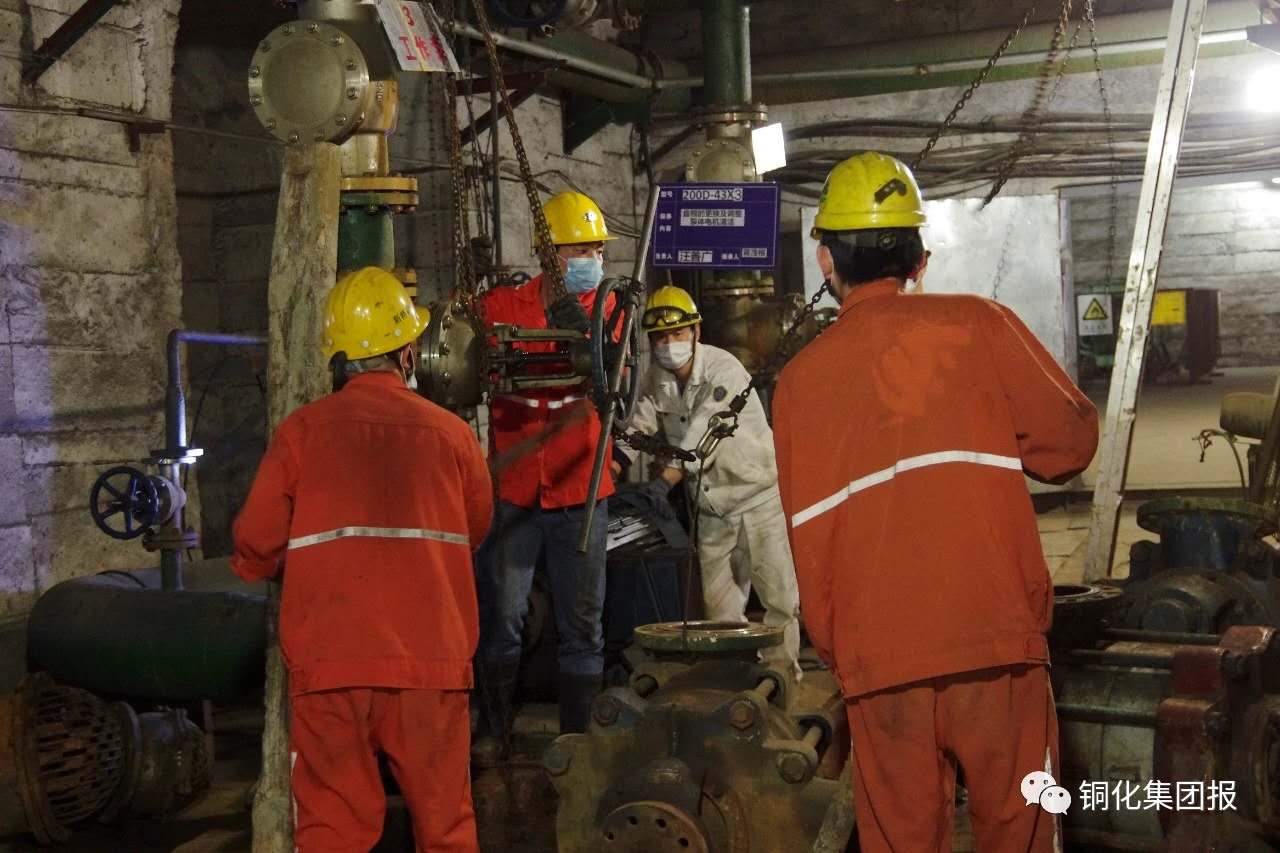 汛期期間,為保障井下采場安全作業(yè)與安全度汛,新橋公司運輸工區(qū)近日組織人員在負339泵房對3號防洪排水泵進行搶修。通過對水泵的拆卸、裝配、調(diào)試,使水泵很快又重新投入了排水。同時,為應(yīng)對雨季與地下豐水期,保障井下采場安全度汛,運輸工區(qū)加大巡檢力度,確保所屬各泵房設(shè)備完好率與開機率。下圖為大家在拆卸故障水泵。秦松濤 攝