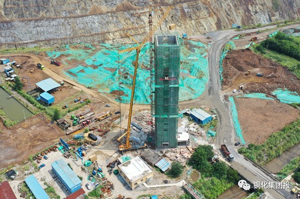 / / / / / 8月13日,在新橋礦業(yè)公司露天轉(zhuǎn)地下技改項目工地,高75米的新主井順利封頂。該項目于2016年1月8日破土動工,總投資5.9億元。新主井封頂后,即可進(jìn)入提升設(shè)備安裝階段,預(yù)計此項目年內(nèi)形成生產(chǎn)能力。王夫谷 朱常林 攝