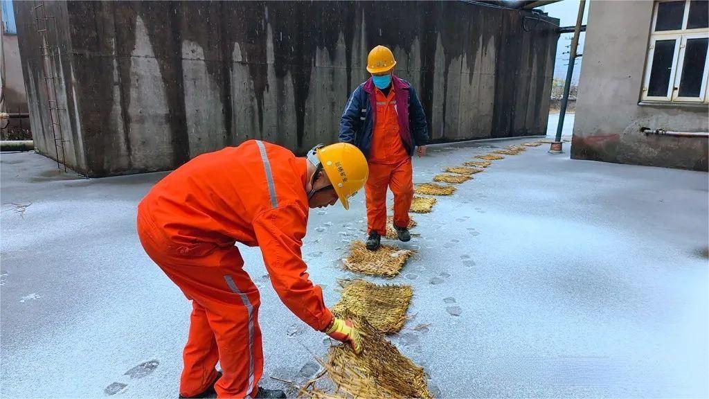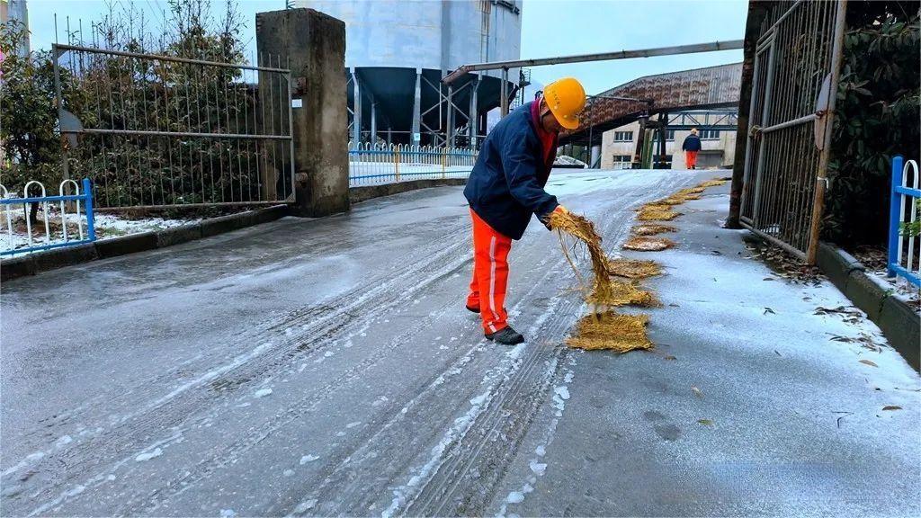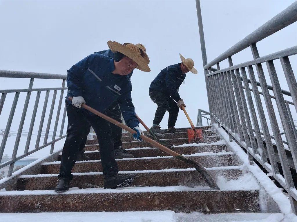 選礦廠、綜合保障部迅速組織員工清理廠區(qū)、天橋、露天臺階樓梯等處積雪,并鋪設防滑草包,保障員工出行安全。